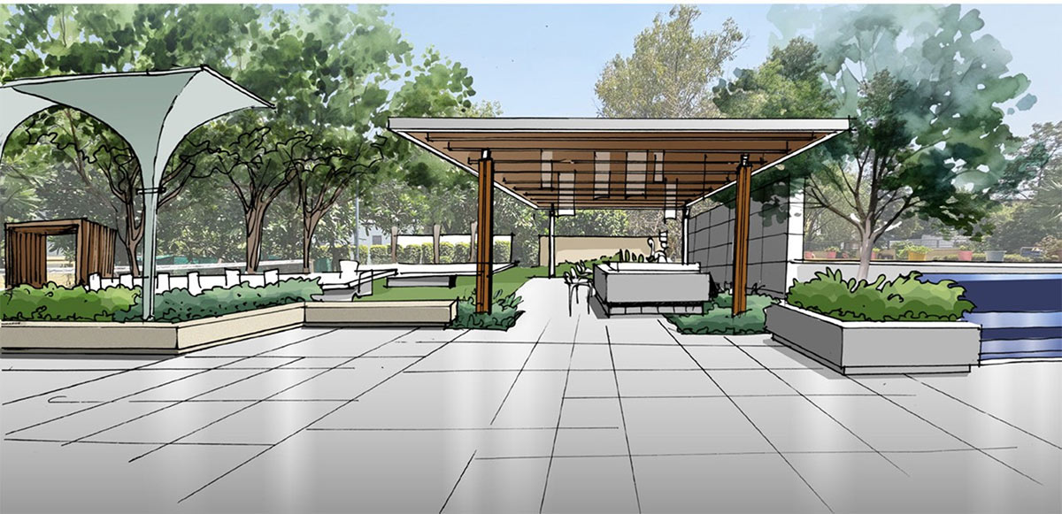 To match evolving expectations and the quality of outdoor amenities now being delivered in contemporary tech parks, SP Infocity is being upgraded comprehensively. Along with planned improvements to the interiors and façade, the landscape design proposes a state-of-the- art campus experience with crisp detailing, bespoke features, a carefully curated planting palette, and an enhanced arrival experience with outdoor amenity gardens.
