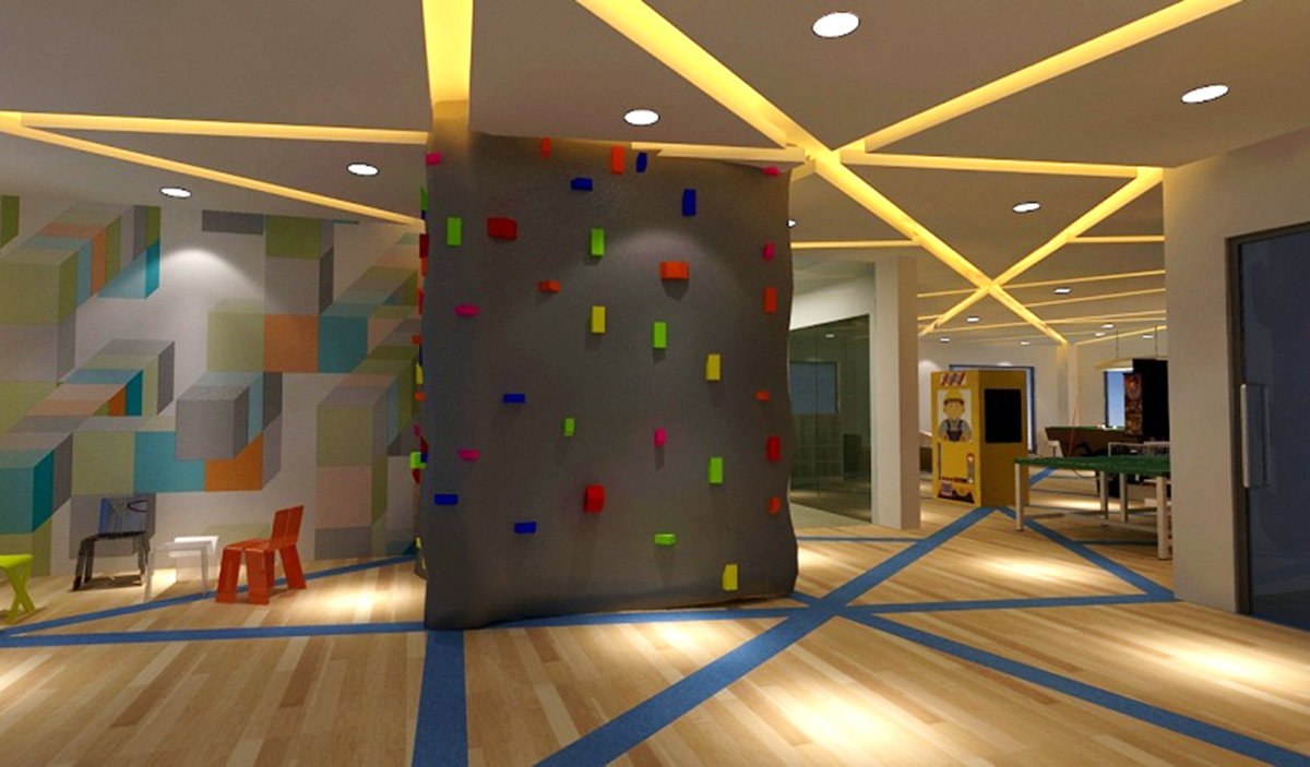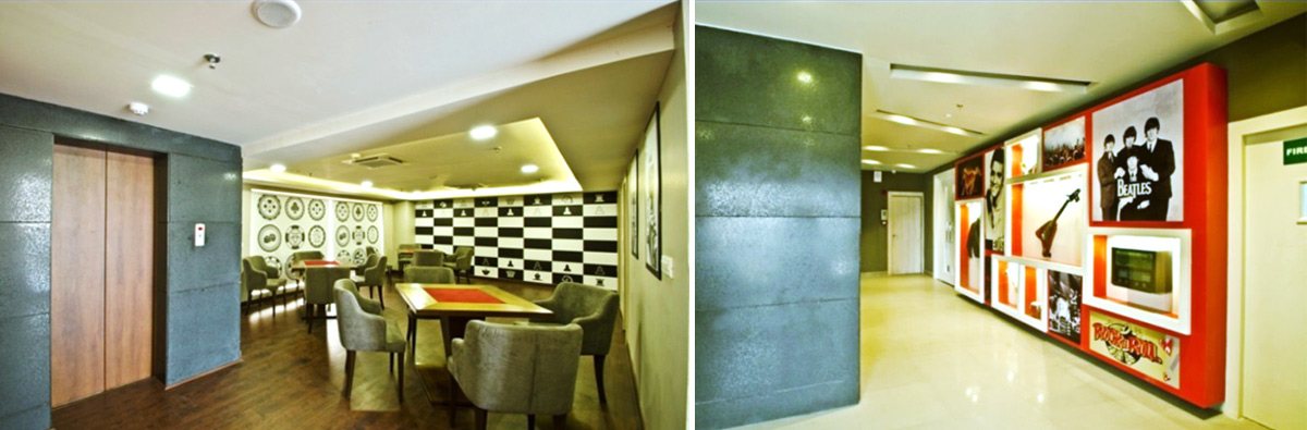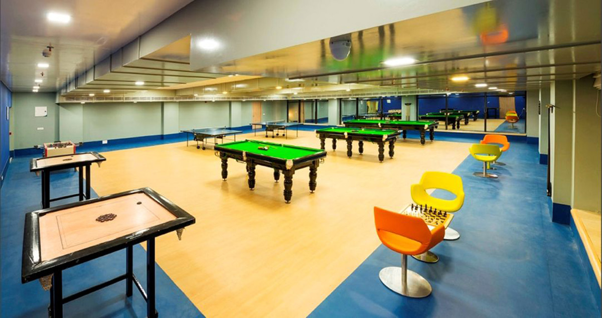 Club 2 of Greenfield City targets kids (7-15 years of age) as its main users, with the spaces designed to be interactive and pioneering in appeal. The games room is armed with high tech virtual reality games and the night club reflects the latest trends in club interiors. The material palette portrays the young feel of the club along with intelligent ambient lighting.